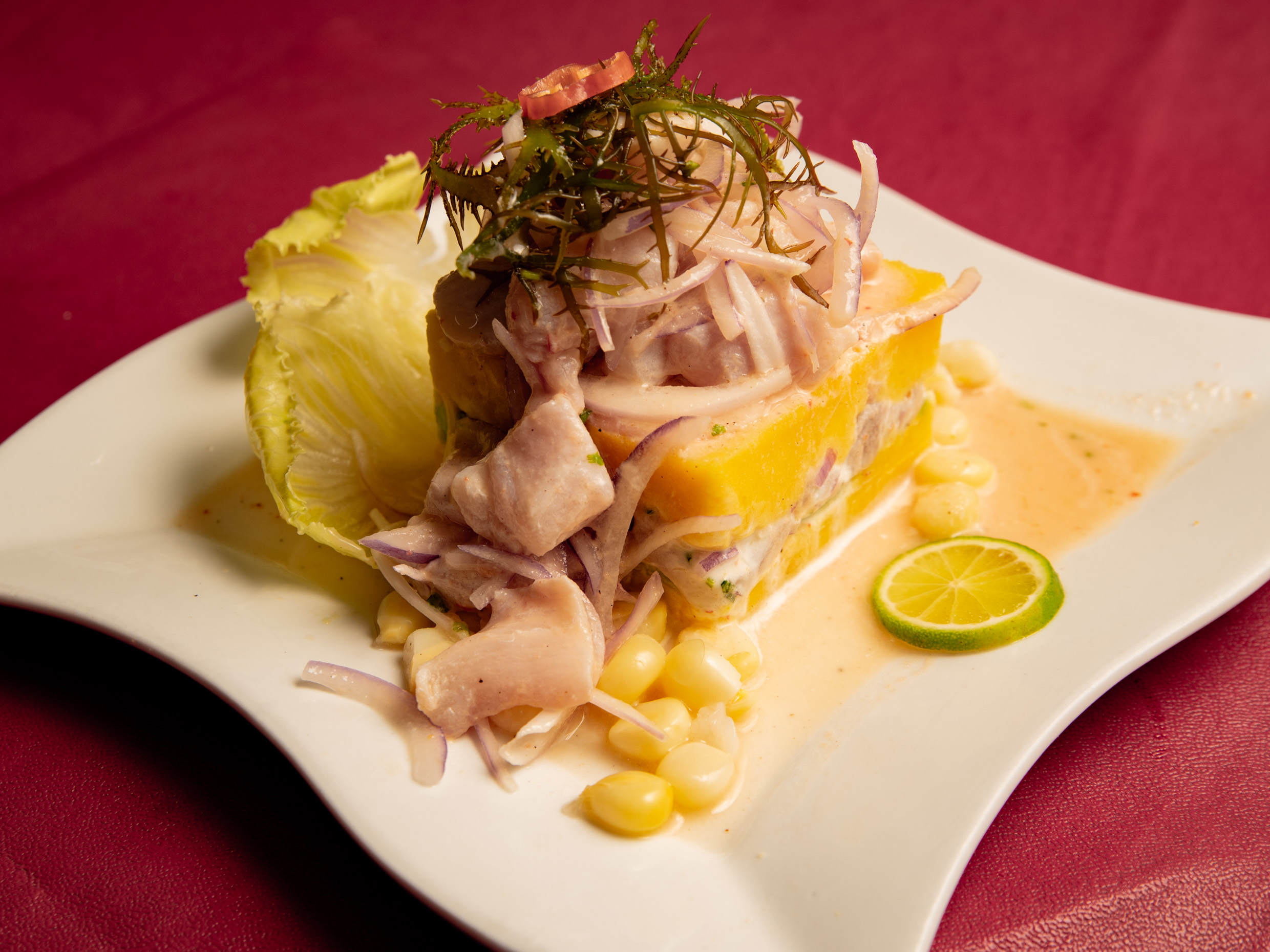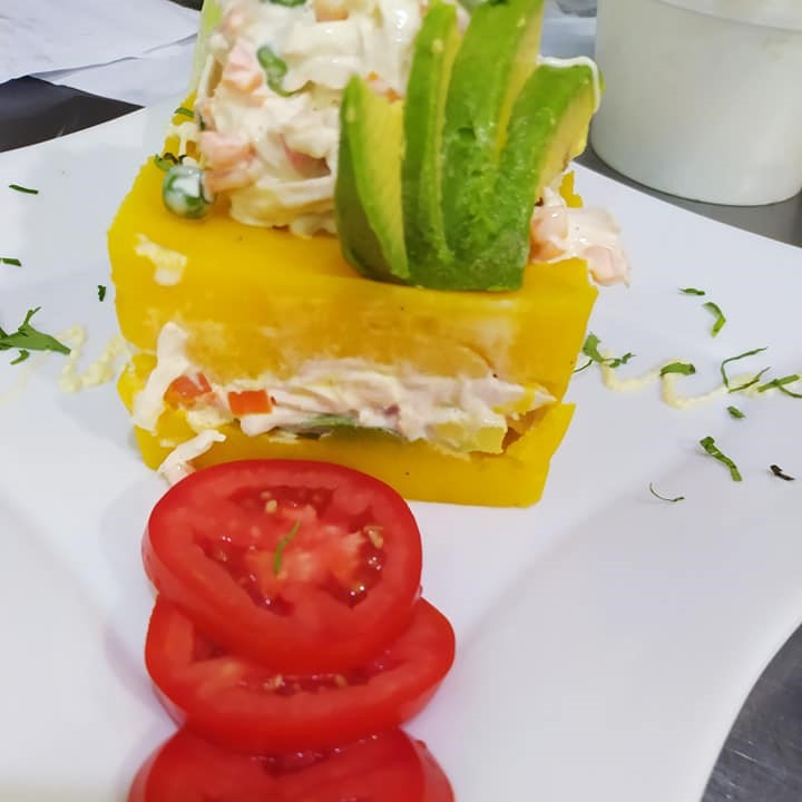 Papa amarilla con relleno acevichado, palta y ceviche.