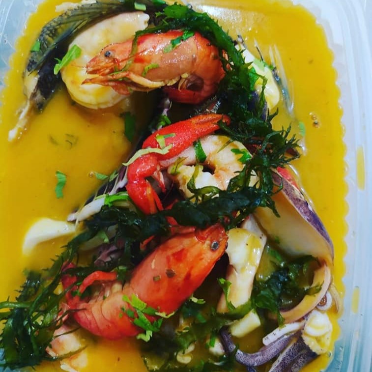 Sopa muy consistente hecho a base de langostinos, arroz, choclo, papa amarilla y queso.
