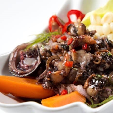 Exóticas conchas negras marinadas con limón, sal más ajíes.
