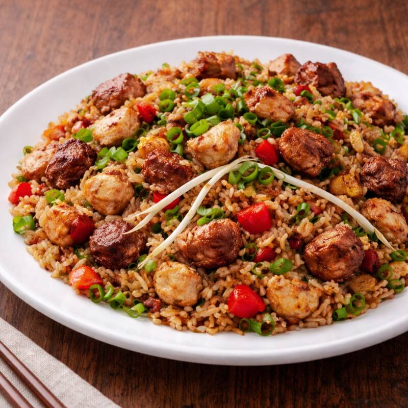 Chaufa Amazónico Mixto de Cecina y Chorizo