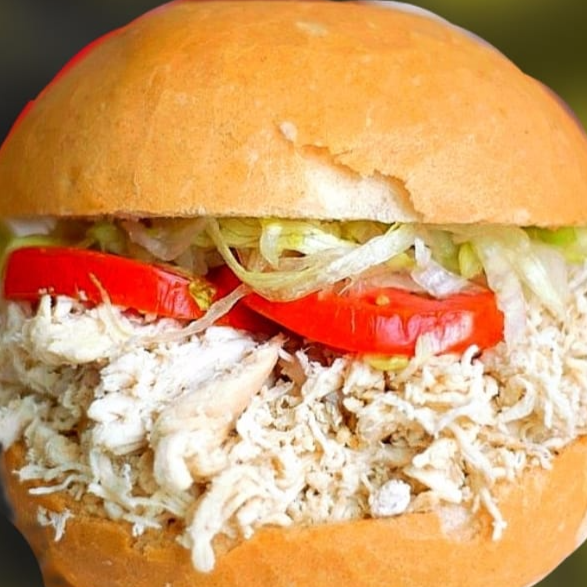 Pan con pollo deshilachado.