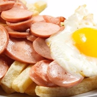 Papas fritas, hot dog y huevo.