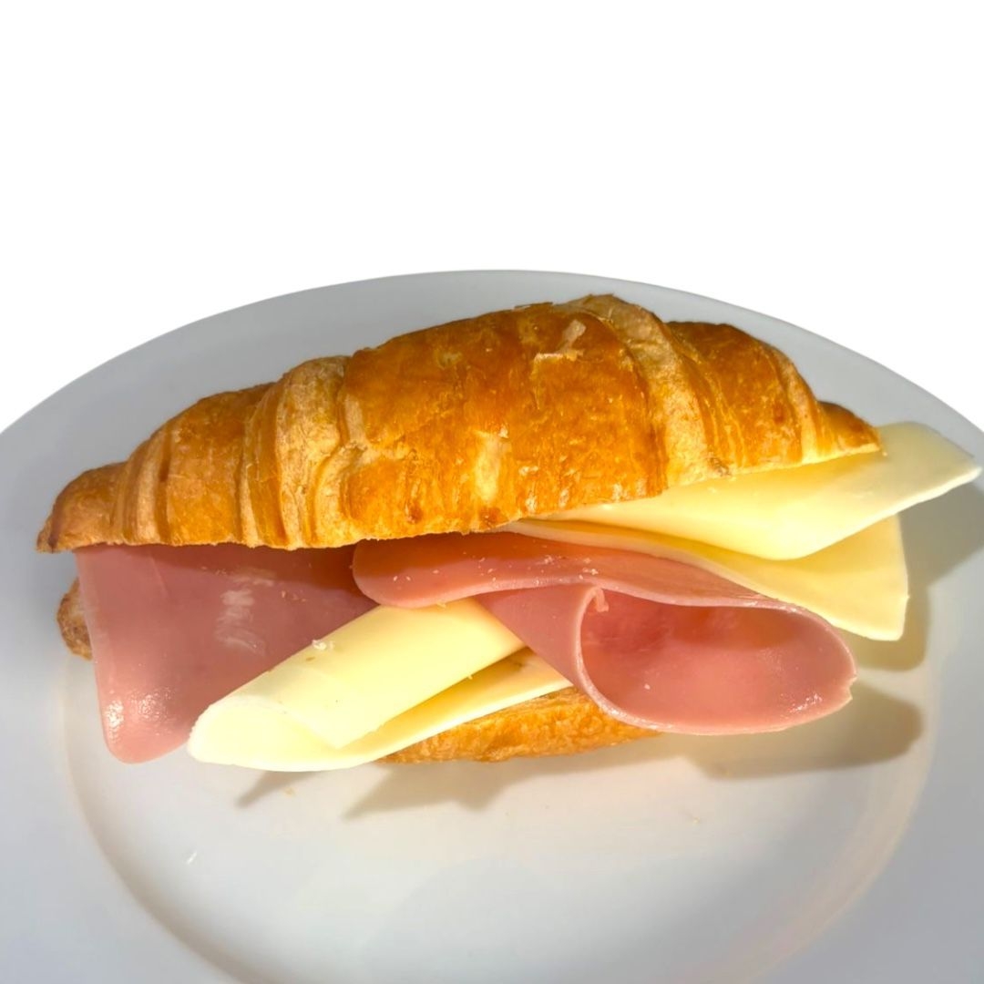 Pan croissant con doble jamón y doble queso.
