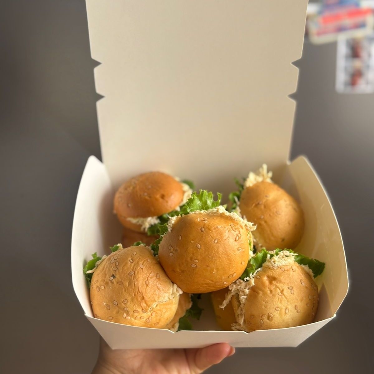 20 petipan relleno de pollo con mayonesa y lechuga.