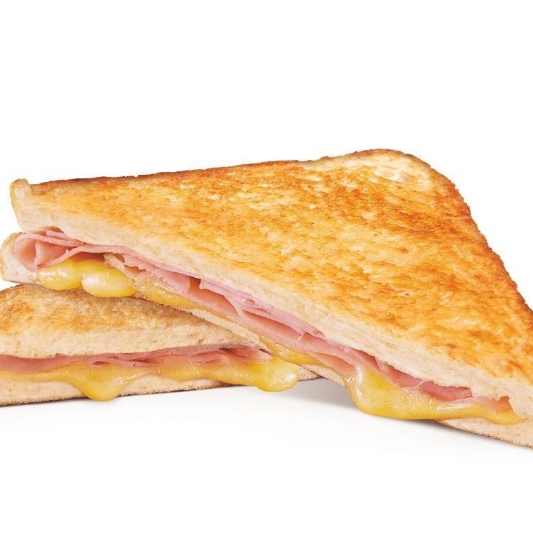 Pan pullman con jamón y queso derretido.