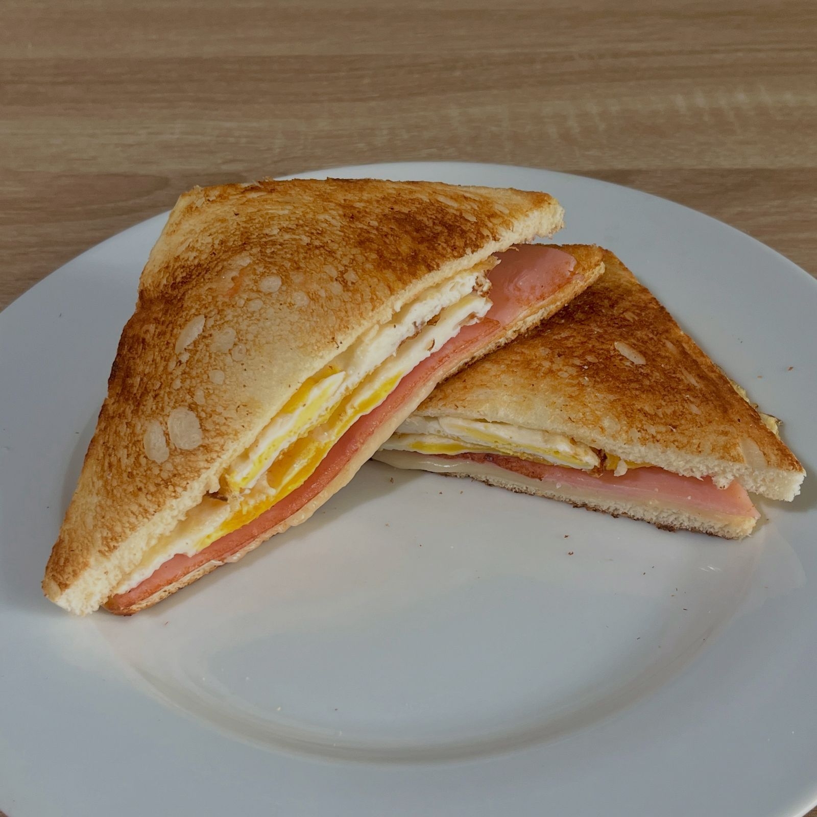 Pan pullman con su delicioso jamón, queso derretido y su huevito completo.
