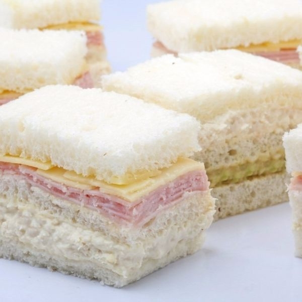 20 mini triple relleno de palta, tomate y huevo.