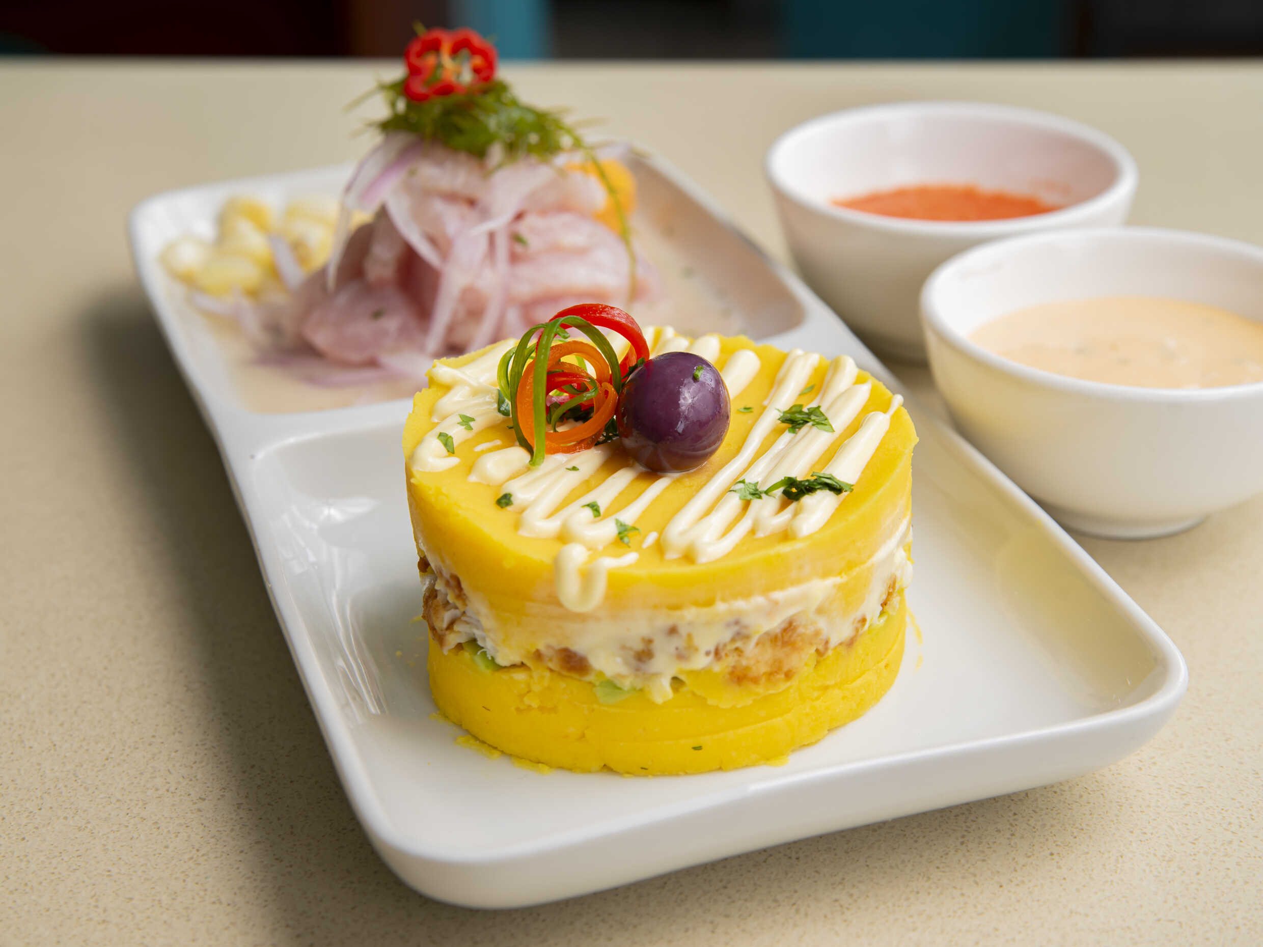 Ceviche de pescado clásico, choclo, camote más nuestra deliciosa causa rellena de pescado, mayonesa y palta