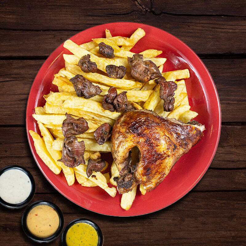 Nuestro tradicional 1/4 de pollo con papas fritas, y mollejitas