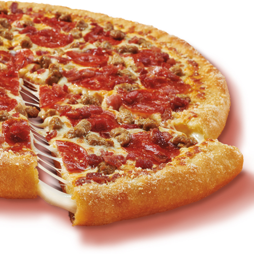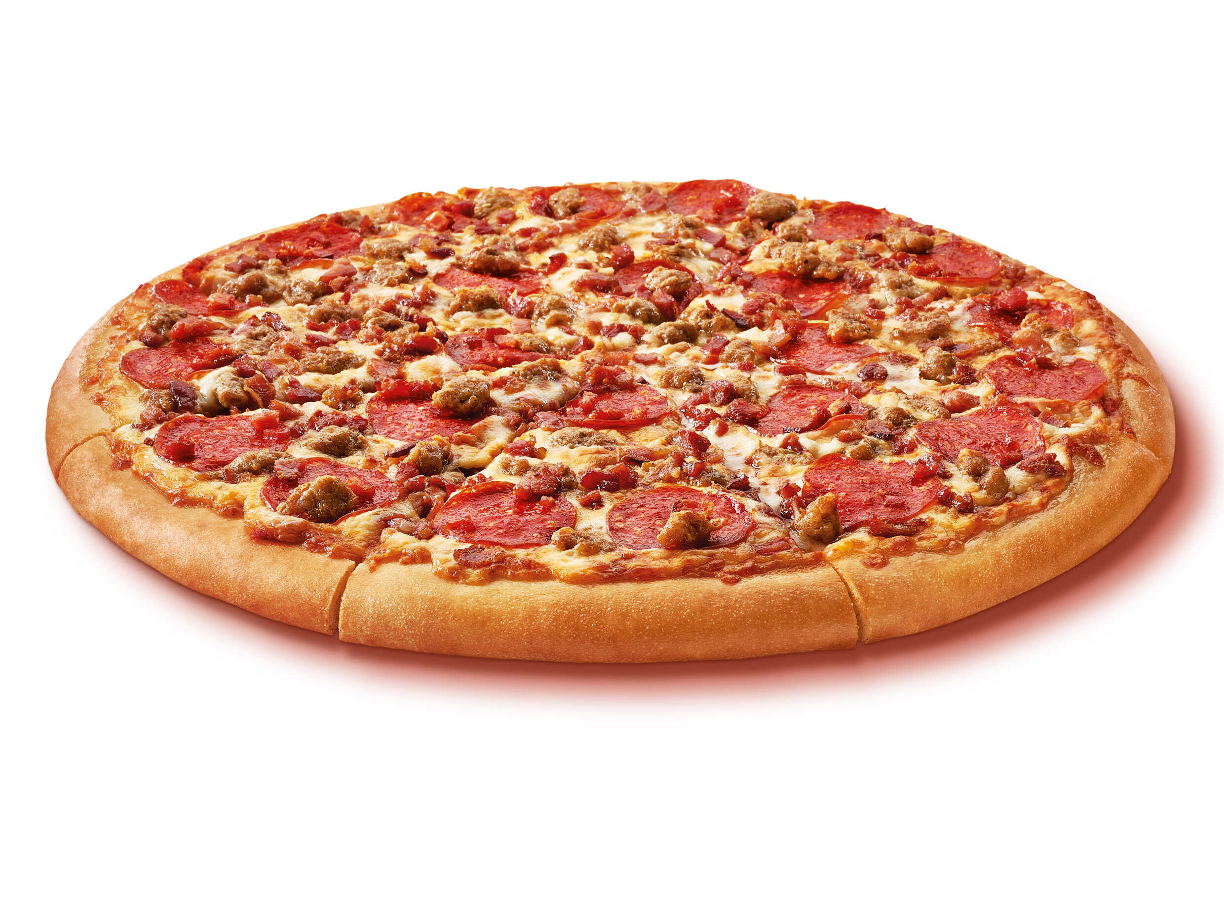 Pizza familiar 36 cm, salsa de tomates, cubierta de queso 100% mozzarella, pepperoni, salchicha italiana y tocino.