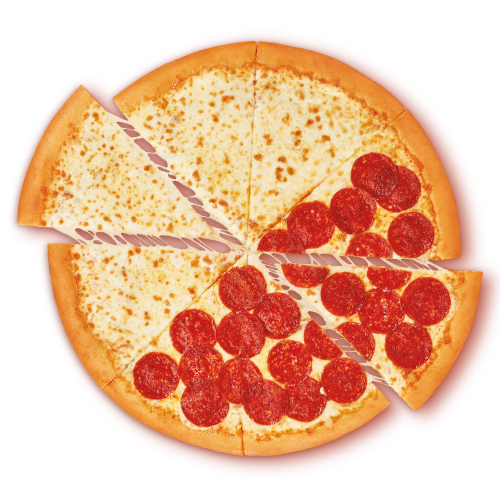 Pizza familiar mitad extra pepperoni / mitad extra queso.