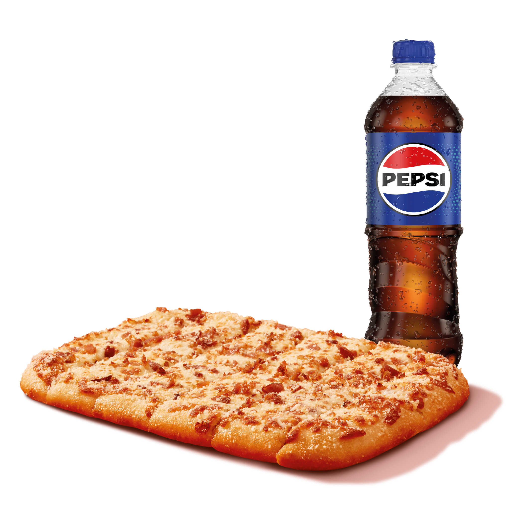 12 Palitos de pan cubiertos (3 quesos, 3 quesos y bacon o 3 quesos y pepperoni) + Pepsi 600 ml.