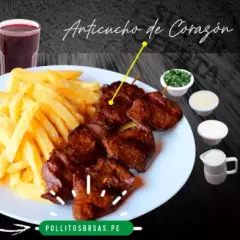 1/4 de Pollo a la Brasa con Anticucho o Chorizo