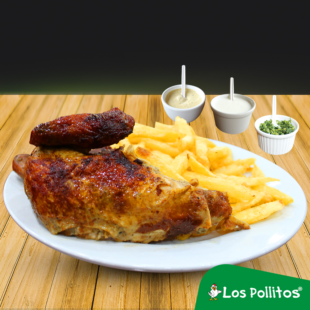 1/2 Pollo a la Brasa con Papas Fritas y Ensalada