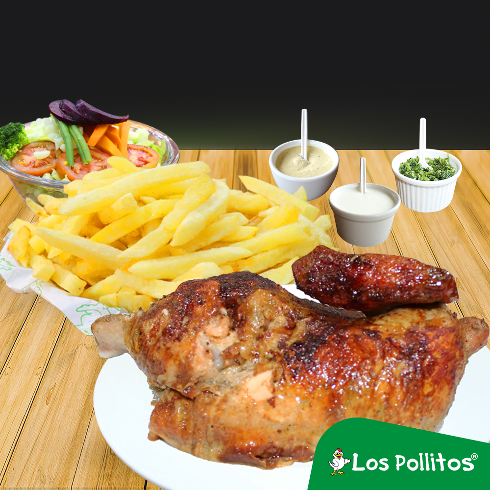 1/2 Pollo a la Brasa con Papas Fritas y Ensalada