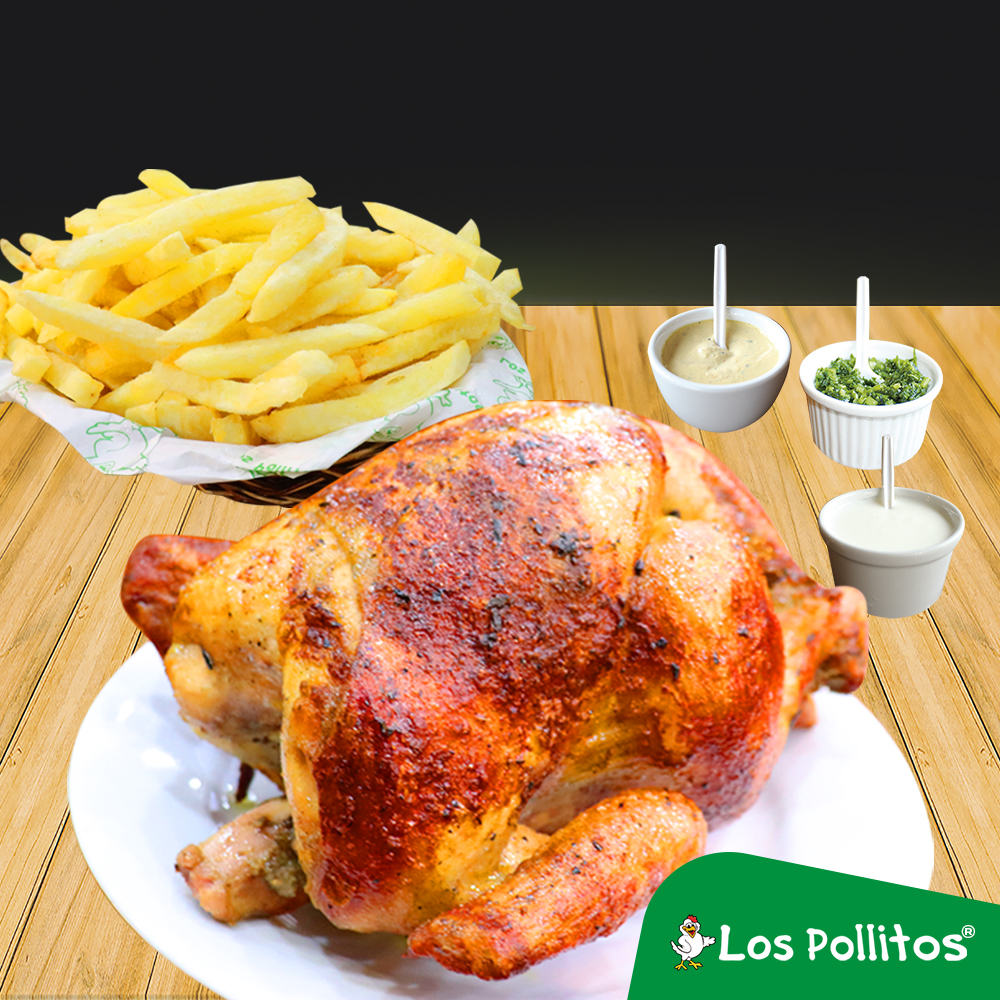 1 Pollo a la Brasa más 1/2 Pollo con Papas