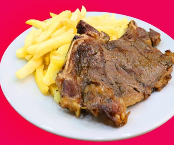 Deliciosa parrilla de chuleta con chorizo, anticucho de res, gaseosa de 500 ml, acompañado papas fritas y ensalada.