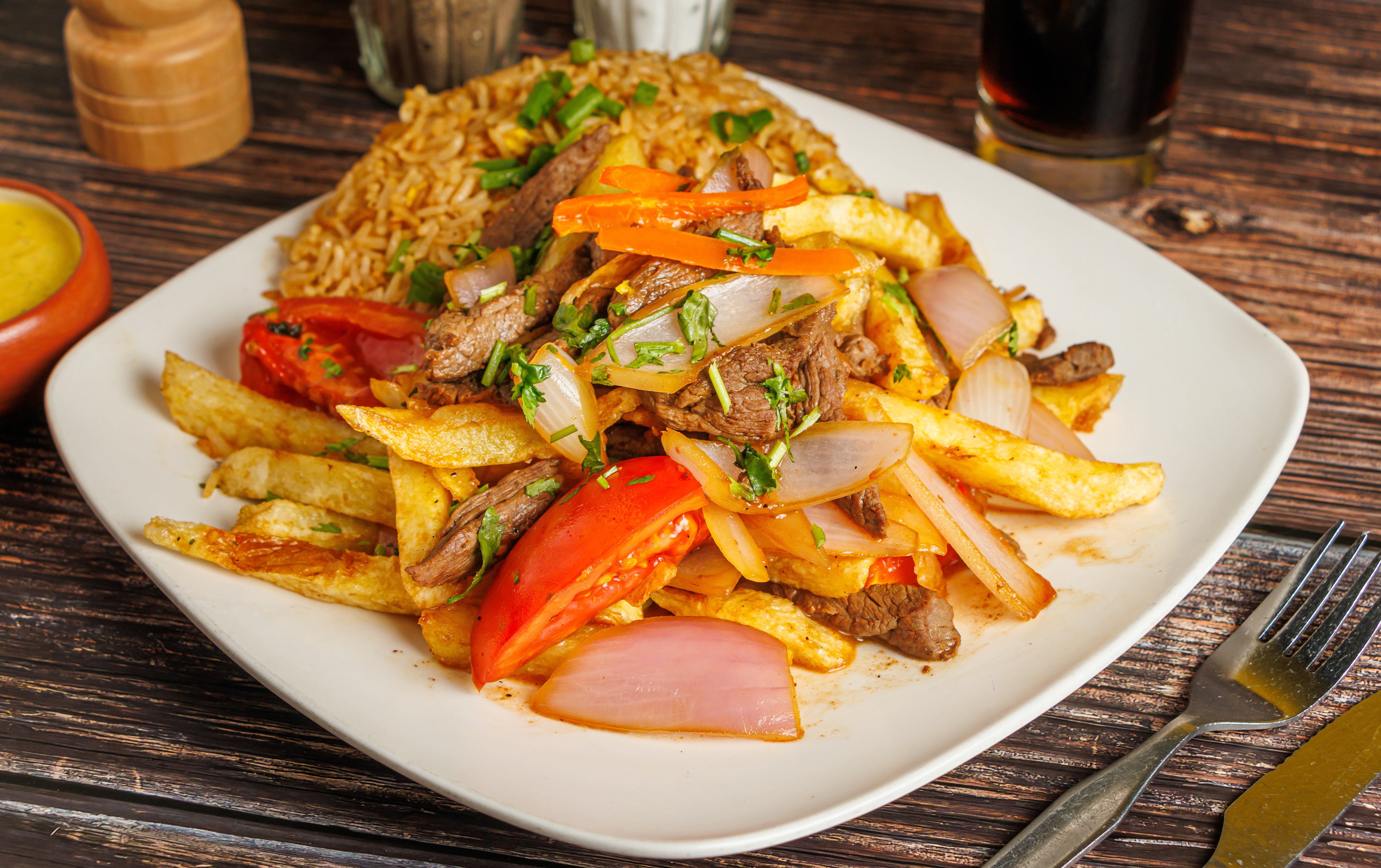 Mix de carnes (chancho, res y pollo) con arroz chaufa.
