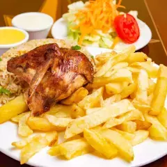 1/2 Pollo a la Brasa con Papas, Ensalada y Chaufa