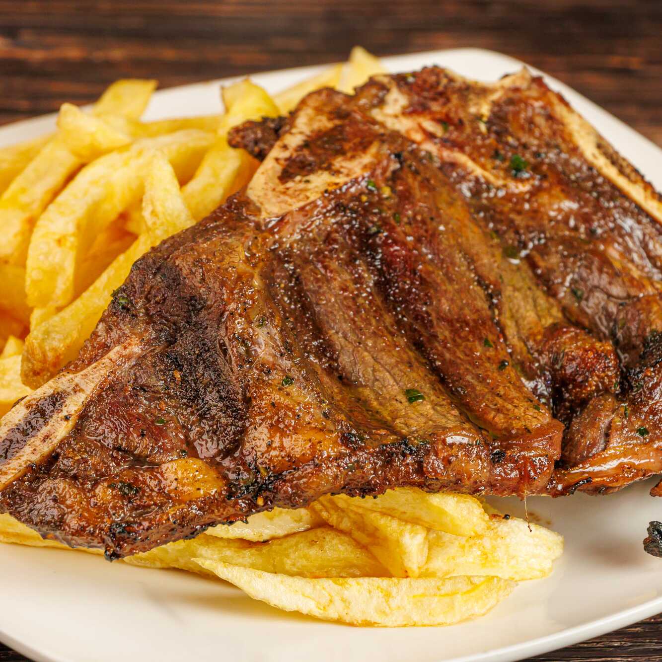 Churrasco 200 gramos, papas, cremas y ensalada.