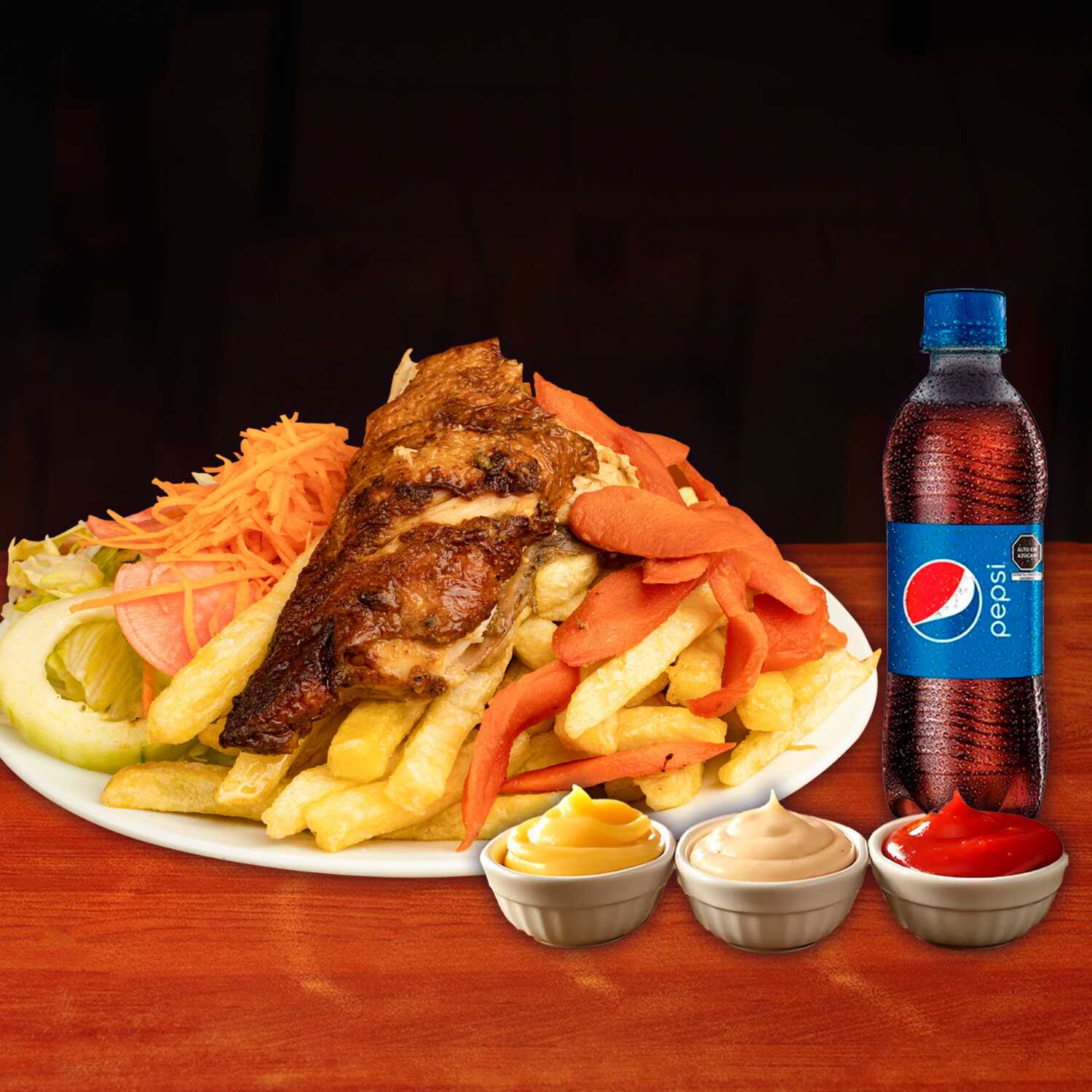 1/4 de Pollo con Papas y Pepsi