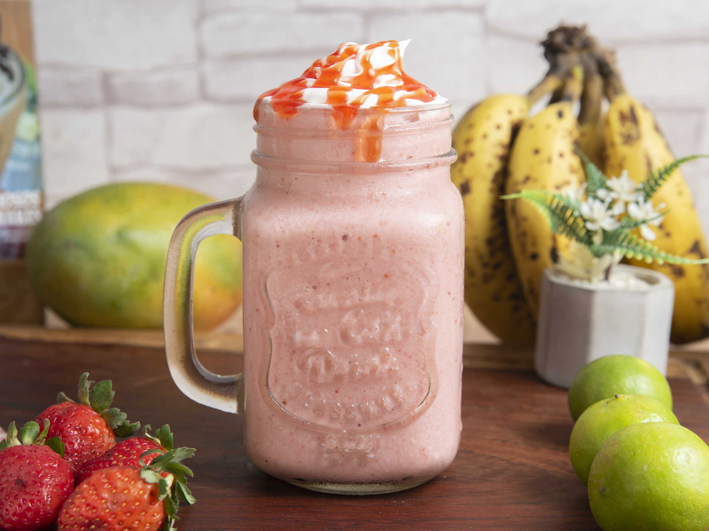 Batido de helado y fresas con crema batida