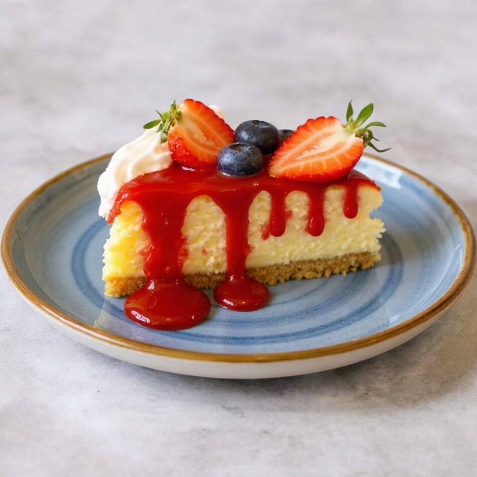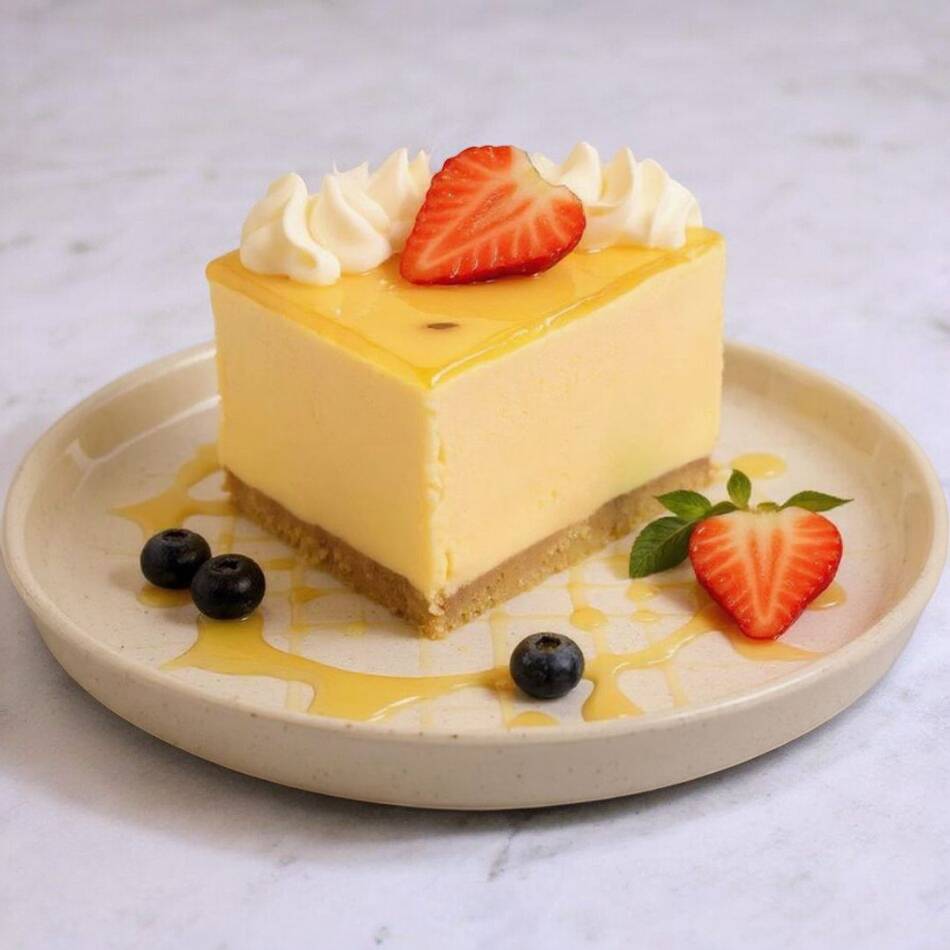 Nuestro cheesecake estrella! A vece de puro queso crema horneado, decorado con una mermelada artesanal.