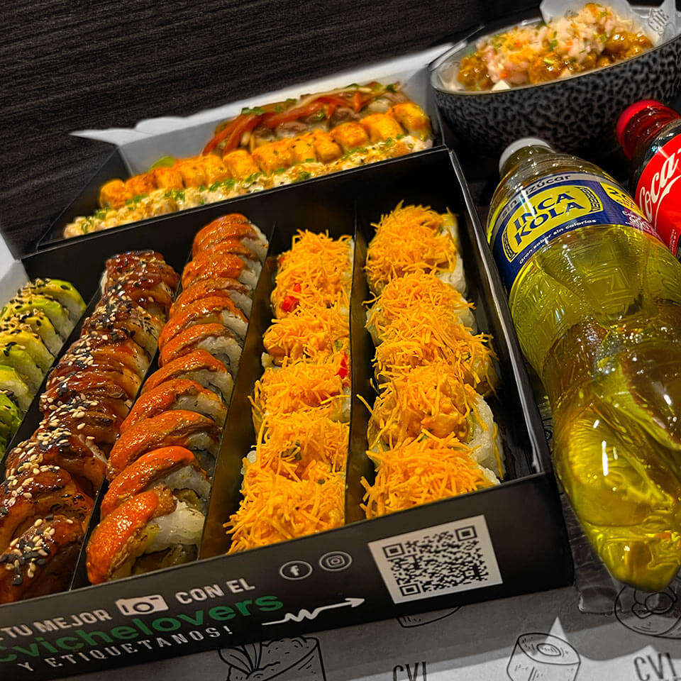 Elige cuatro sabores de makis y disfrútalo con dos gaseosas personales.