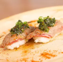 Pescado blanco, salsa abura y cebolla china por 2 unidades.