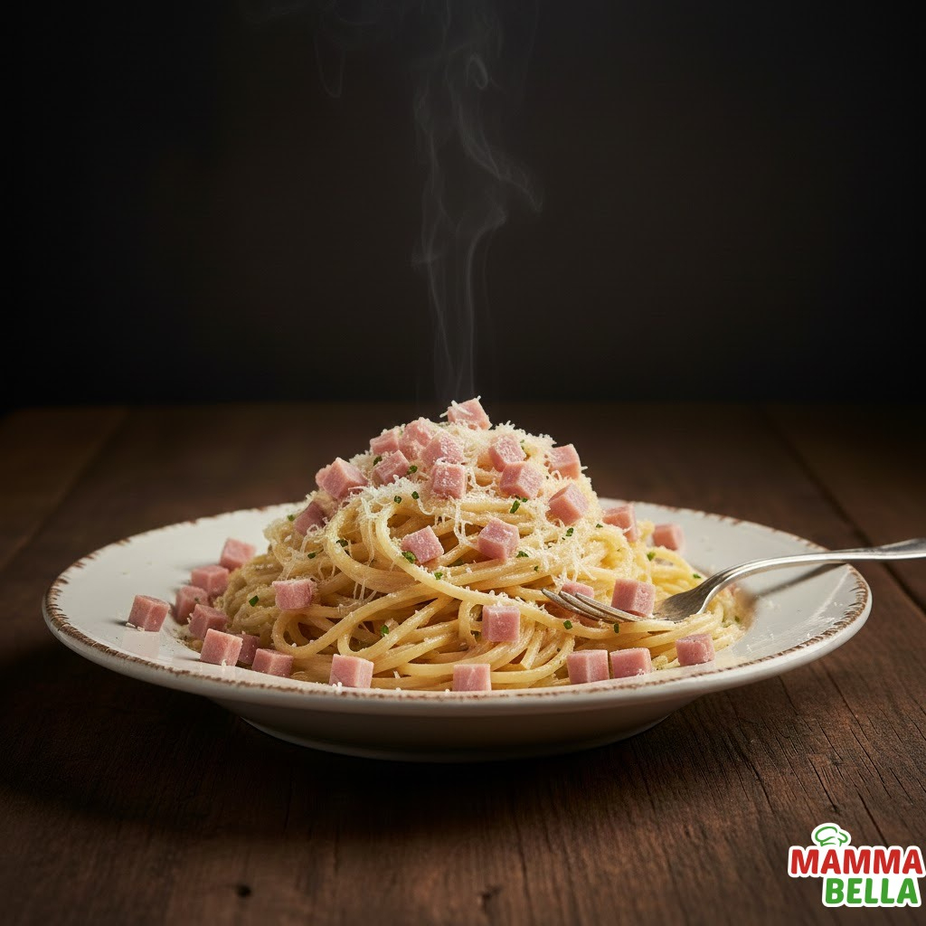 Con jamón en salsa blanca.