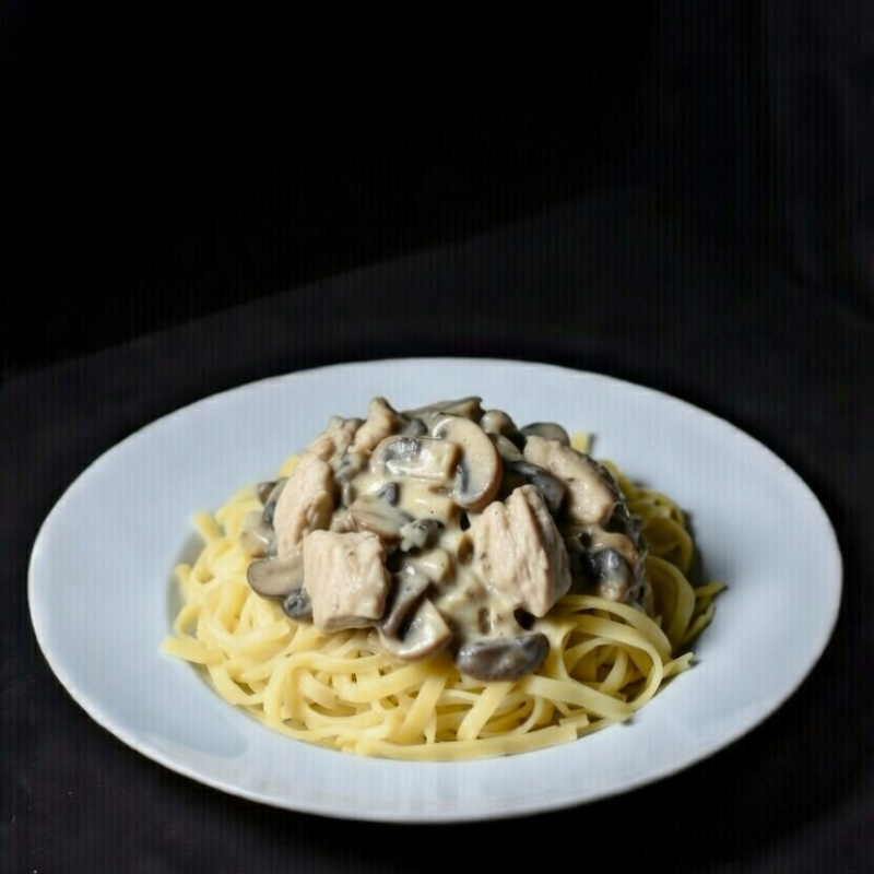 Tallarín Blanco con Strogonoff de Pollo