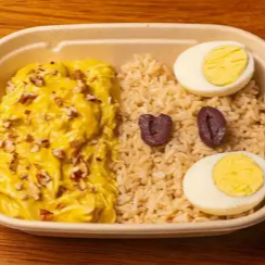 Kcal: 669, prote: 41 g, carbs: 66g y grasas: 15g. El clásico ají de gallina llevado a una forma saludable. El perfecto balance entre arroz integral, carbohidratos y proteína, con su toque peruano.