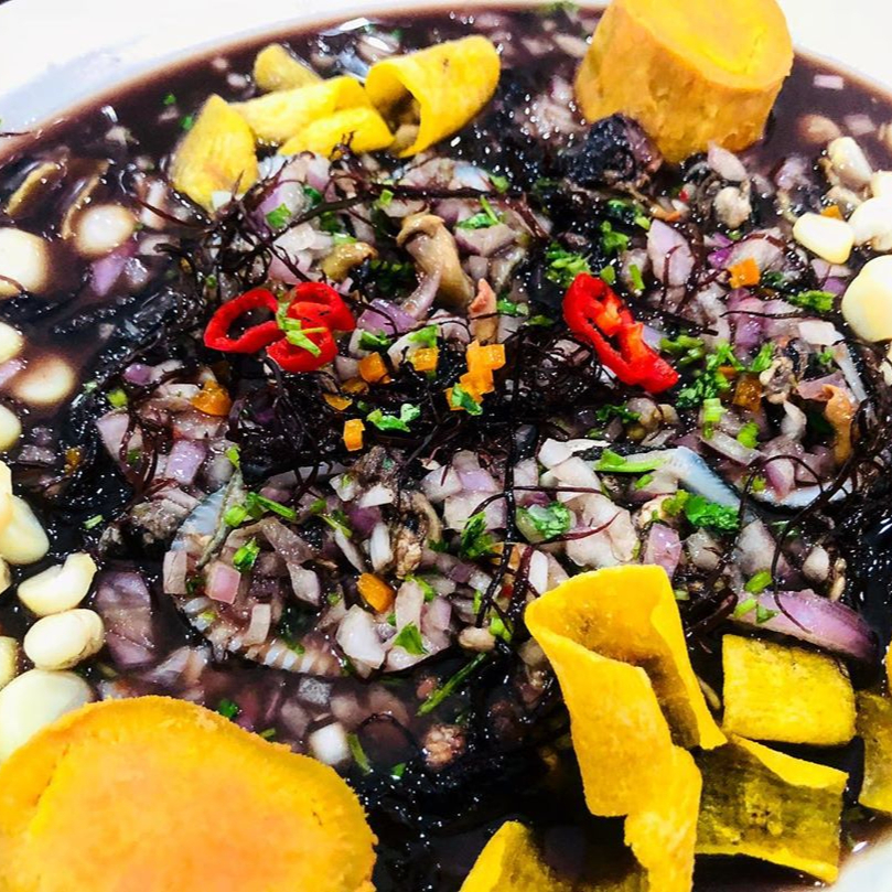Ceviche de conchas negras del norte, sazonado con sal, ajos, cilantro, cebolla roja, ají limo y limón.