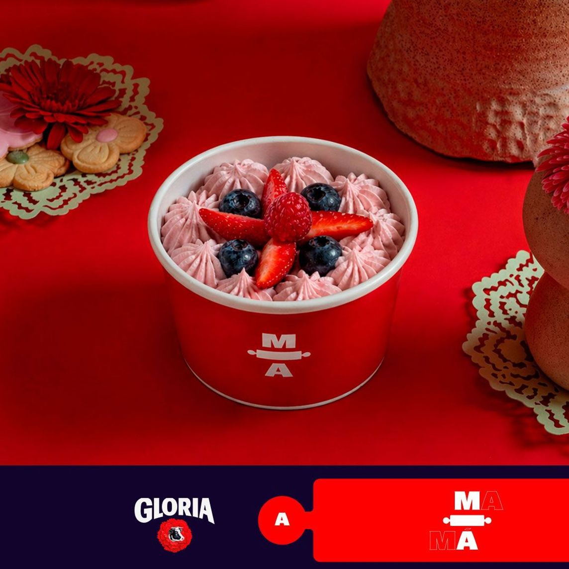 Tres leches de frutos rojos en versión cuchareable. Porción 12onz.