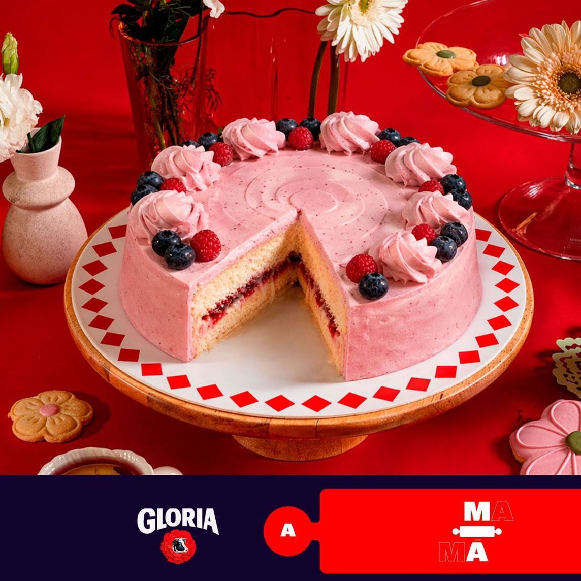 Con arándanos y frambuesas frescas, rellena de mermelada de frutos rojos y decorada con rosetas de nuestra crema julieta. Aprox 21cm de diámetro.