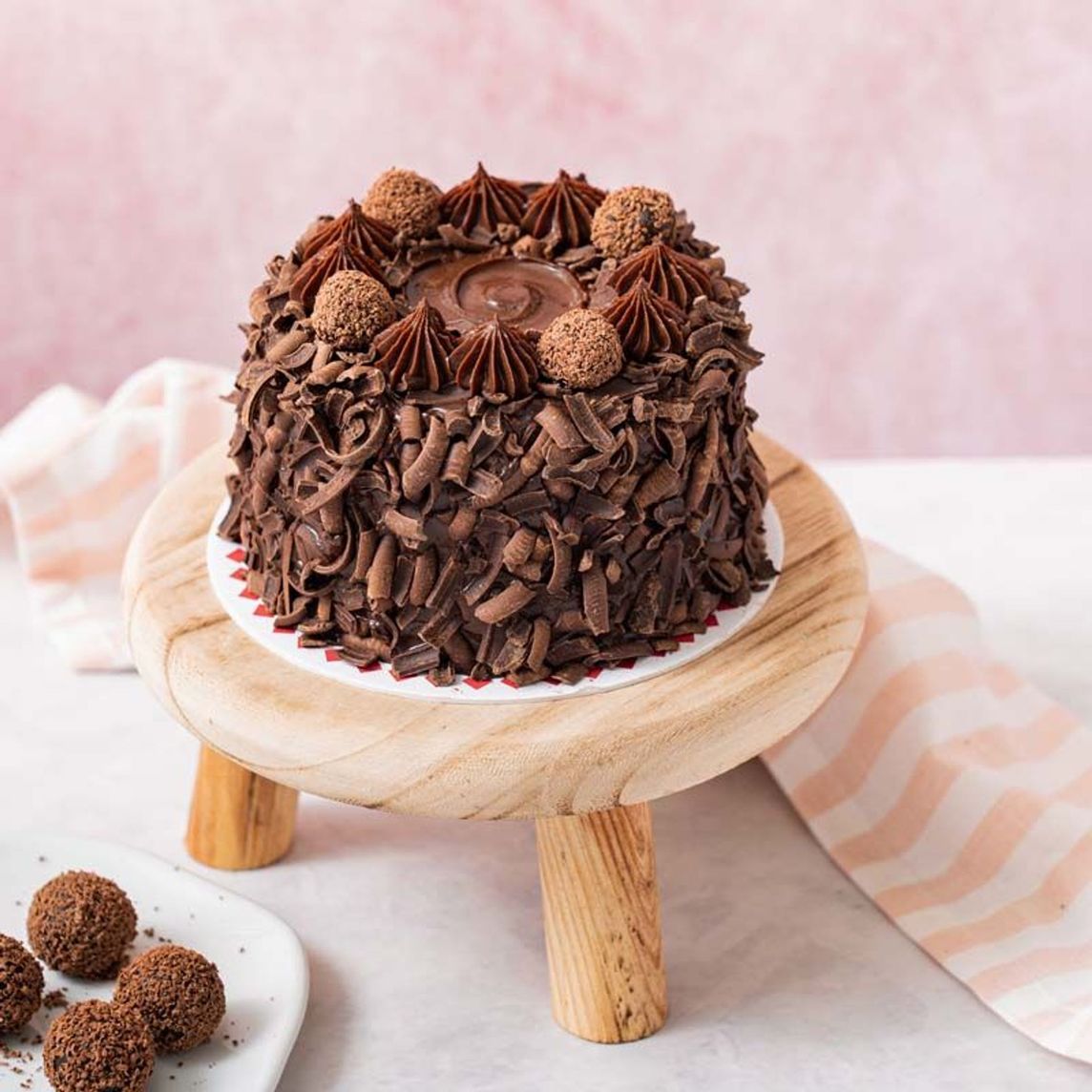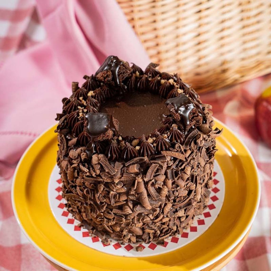 Bizcochuelo húmedo de chocolate, relleno de una capa de fudge y manjar, bañada en ganache y fudge. Aprox 11cm de diámetro. Foto referencial*
