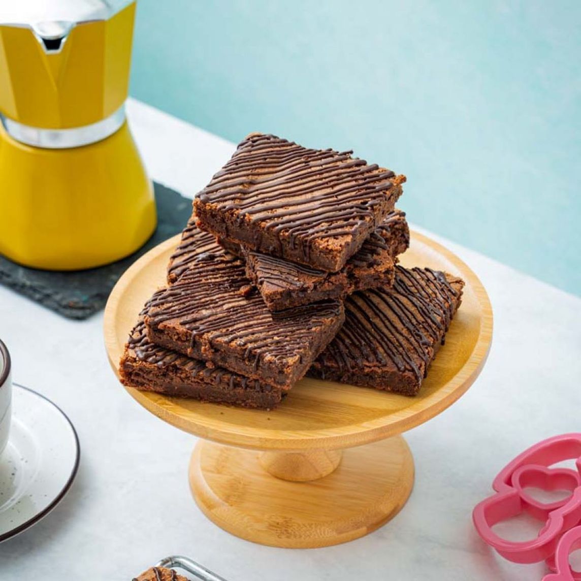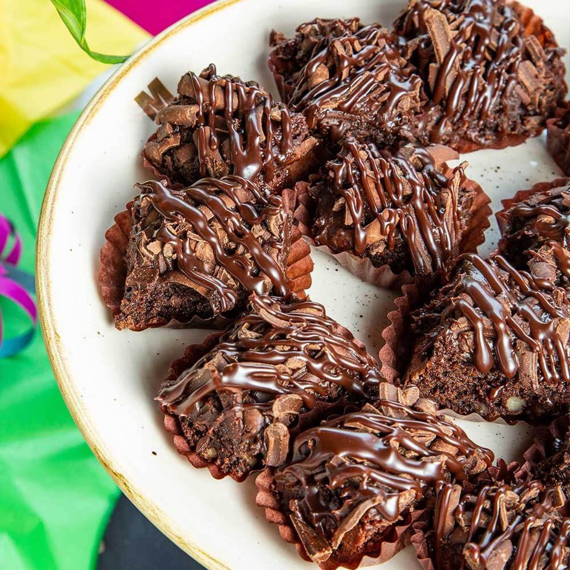 9 Brownies amelcochados, bañados en fudge y con rulos de chocolate