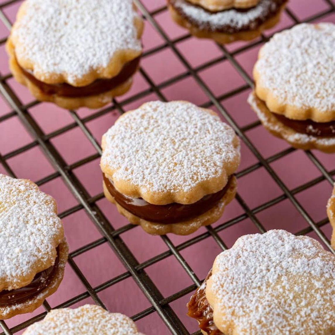 16 Alfajores rellenos de bastante, bastante manjar blanco