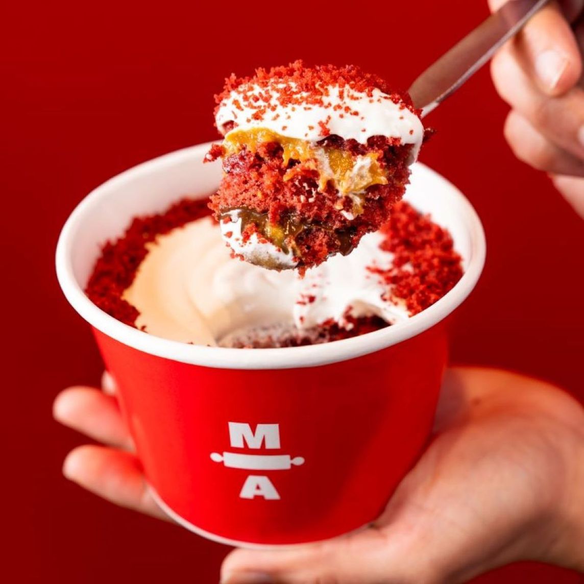 Tres capas de keke red velvet, relleno de fudge y manjar casero, decorado con frosting hecho a base queso crema. Porción de 12oz.