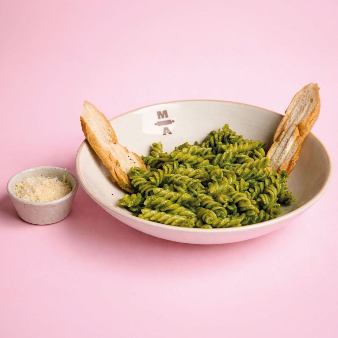 Tostón de pan multigrano, palta, salsa de estragón, aceite de oliva y brotes.