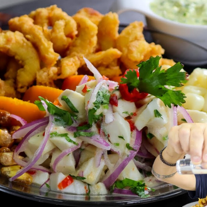 Chicharrón Pescado +Cebiche Pota + Entrada+ Bebida