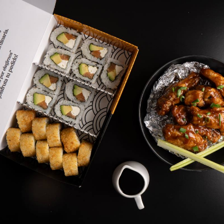 dos sabores de makis + 1 sabor de alitas