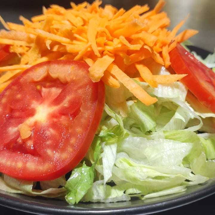 Pechuga y ensalada fresca especial de lechuga en tiras, tomate, zanahoria rayada y entrada a elección.