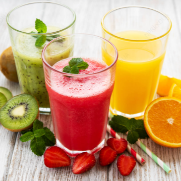 Leche mezclada con helado de fresa y helado de mango.