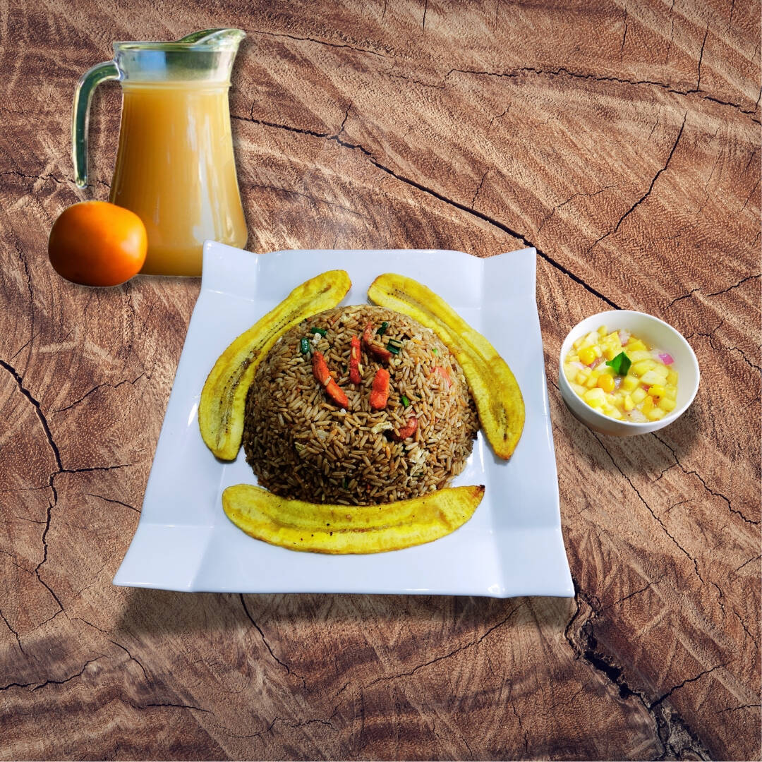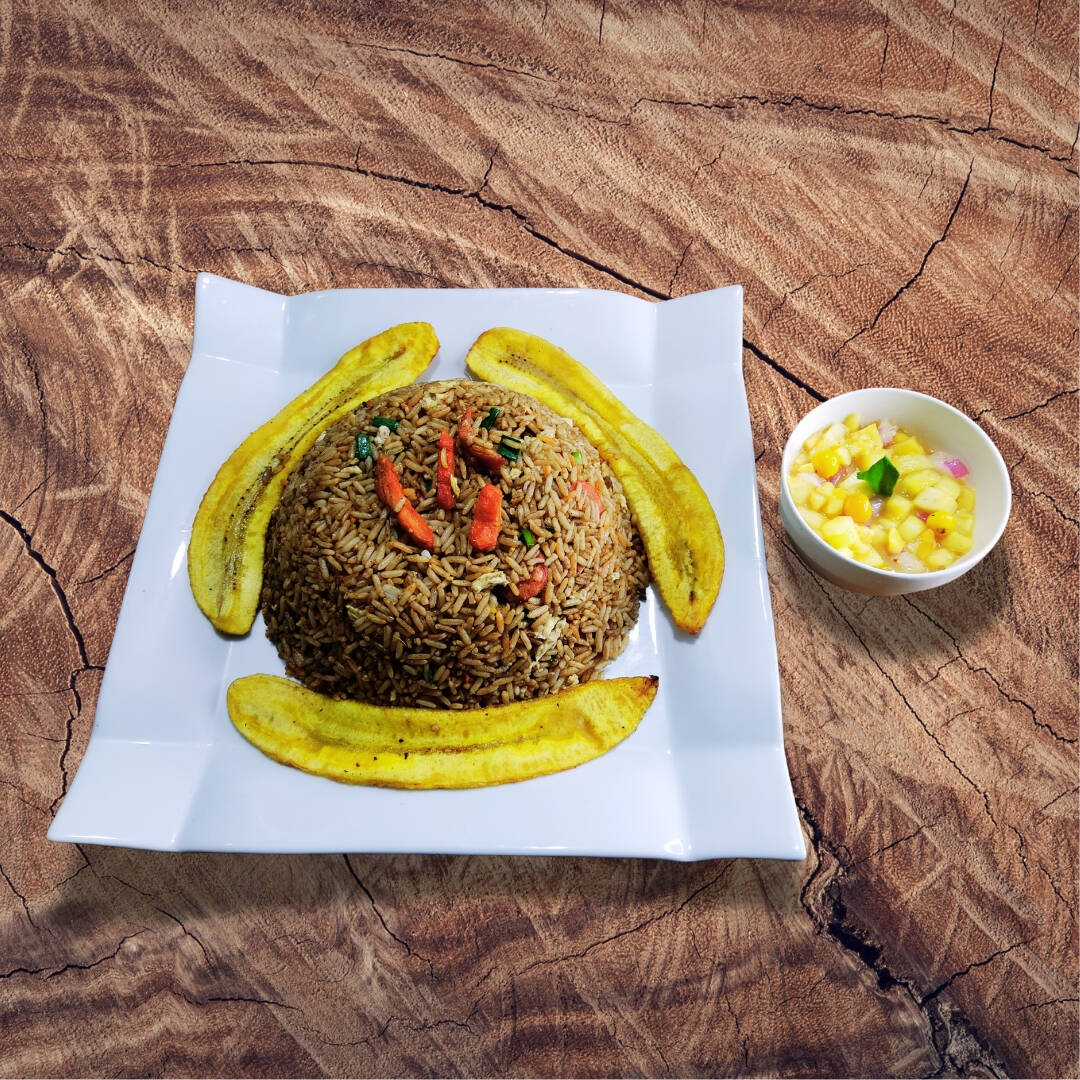 Chaufa selvático con cecina y chorizo + maduro + ají de cocona.