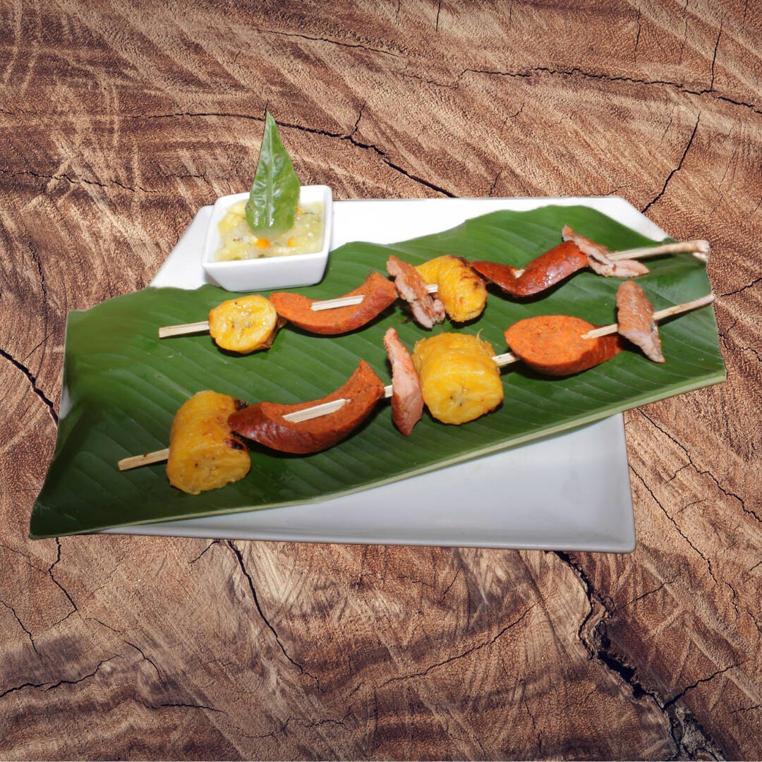 02 bolas de Tacacho + porción de chorizo + porción de cecina + ají de cocona.