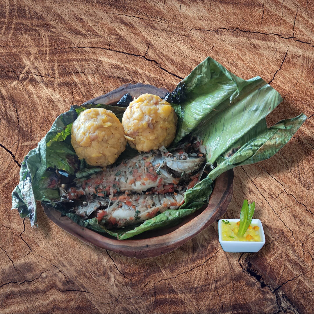 Patarashca de bagre con 02 bolas de tacacho +aji de cocona