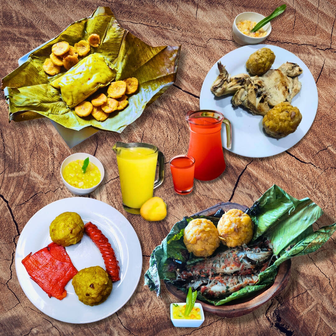 Juane de Yuca con Paiche*1 + Pollo Canga*1 + Patarashca de Bagre*1 + Tacacho Mixto*1 + Cocona 1 L*1 + Camu Camu 1 L*1