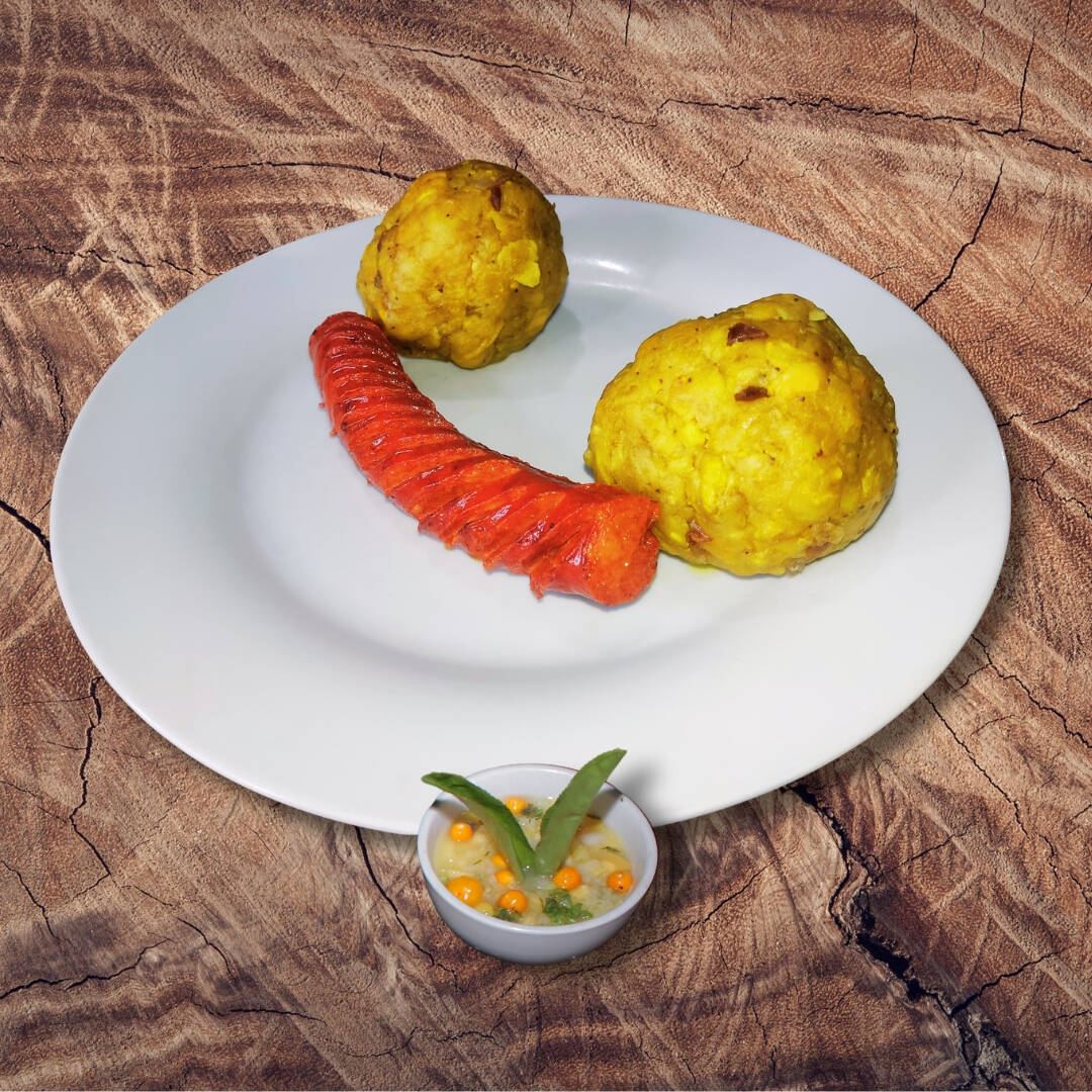 02 bolas de tacacho + porción de chorizo + ají de cocona.
