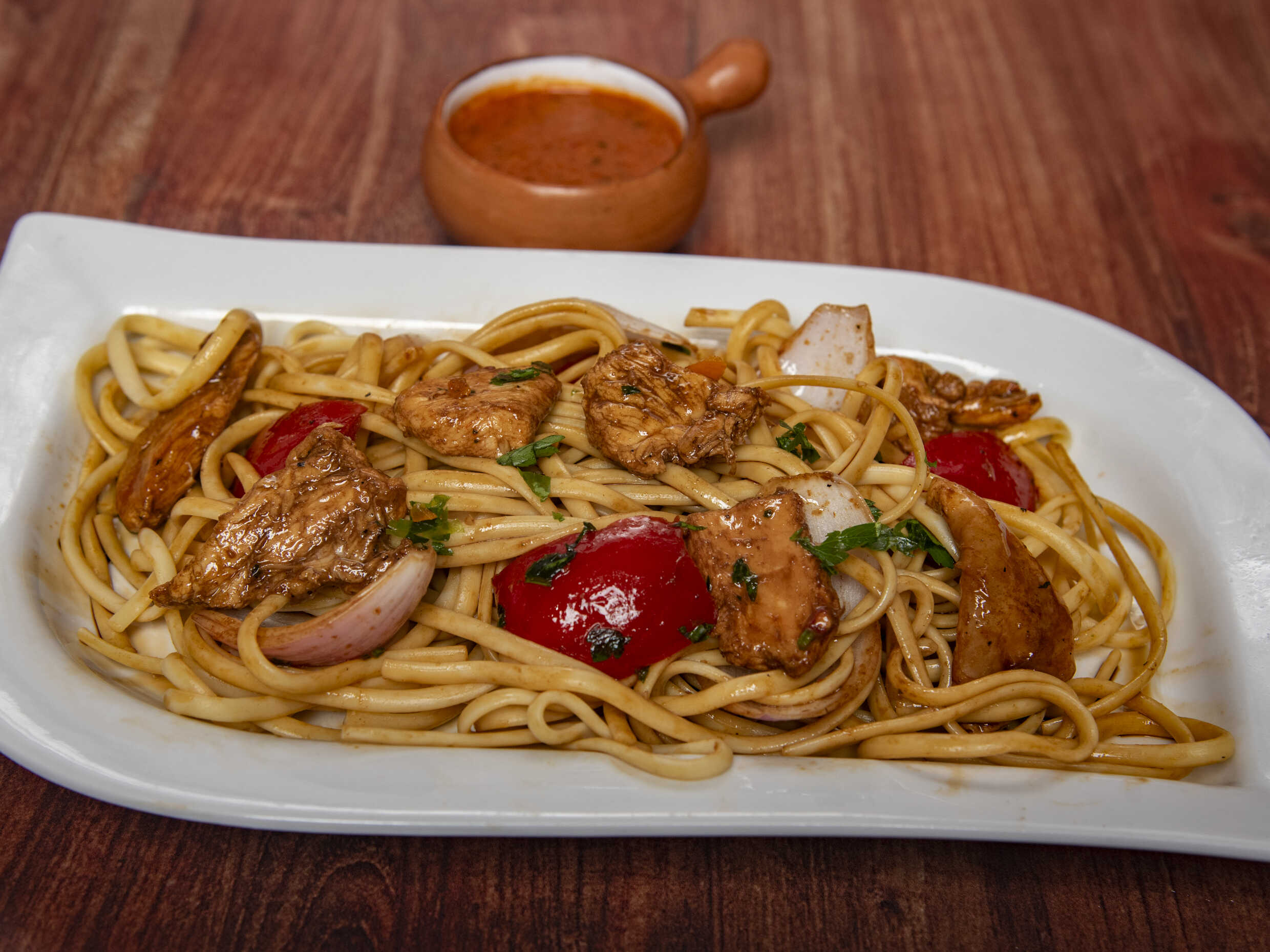 Tallarín con pollo, tomates, cebolla, ají limo y hierbas. Todo salteado al wok para darle ese sabor ahumadito que tanto nos encanta. Incluye una bebida a elección.